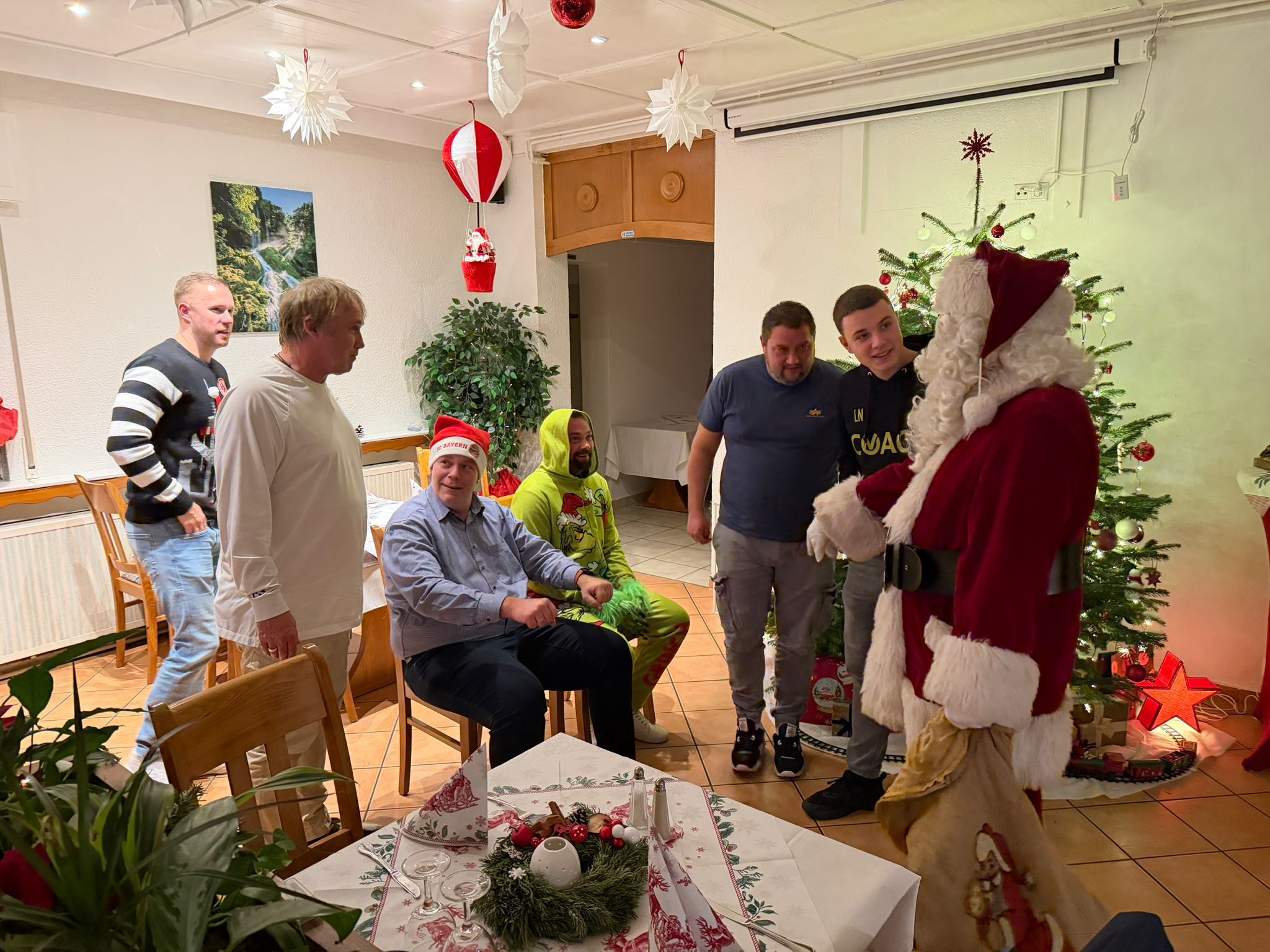 Nach einem leckeren gemeinsamen Abendessen stand das gesellige Miteinander im Vordergrund. Es wurde über das vergangene Jahr gesprochen, Erinnerungen ausgetauscht und in entspannter Runde zusammengesessen. Für einen besonderen Moment sorgte der Besuch des Weihnachtsmanns, der mit seiner Überraschung und guten Stimmung für viele lachende Gesichter sorgte.